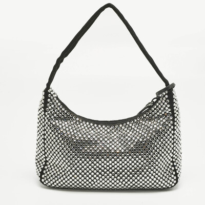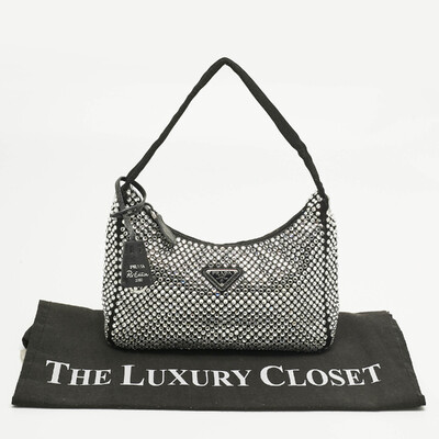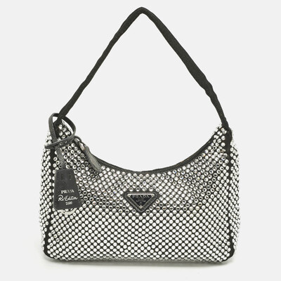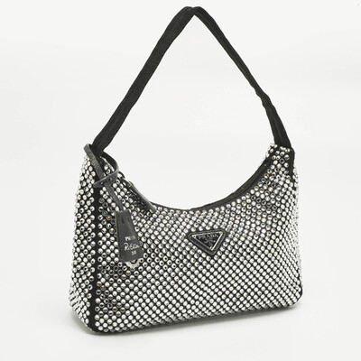 Prada Black Satin Re-Edition 2000 Crystals Shoulder Bag 1223173 - 1