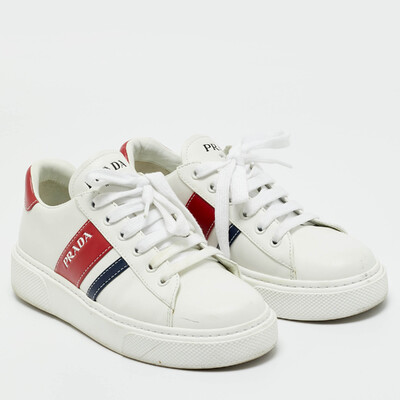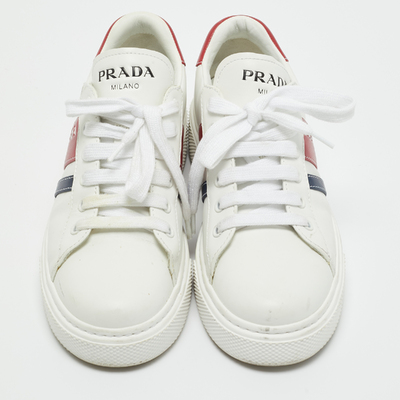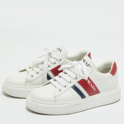 Prada White Leather Donna Lace Up Sneakers Size 37 1222775 (белый, lpn31010027)