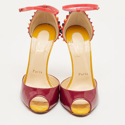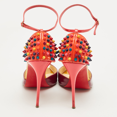 Christian Louboutin Multicolor Patent Leather Pina Spike Ankle Strap Sandals Size 38.5 1222695 (lpn31010031)