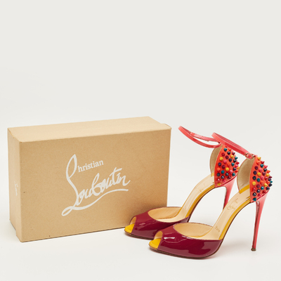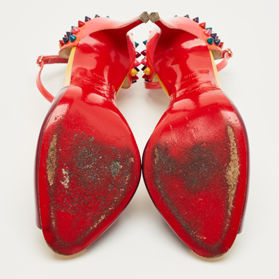 Christian Louboutin Multicolor Patent Leather Pina Spike Ankle Strap Sandals Size 38.5 1222695 - 1