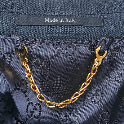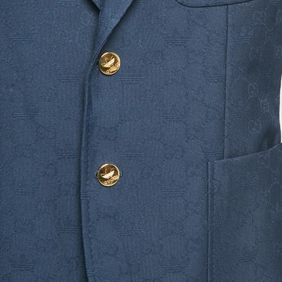 Gucci’s collaboration with Adidas reimagines tailoring with a blue monogram jacquard blazer accented by subtle sportswear codes. The structured cut and athletic inspired details bridge formalwear and streetwear. Layer over crisp shirts or even a graphic tee for a fresh high low mix.