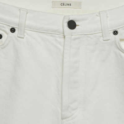Minimalist and modern, these Celine jeans come in crisp white denim with a raw edge hem for subtle edge. Tailored for a sleek, straight fit. A versatile staple for chic off duty dressing.