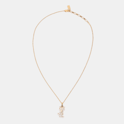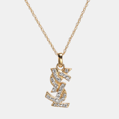 Yves Saint Laurent Gold Tone Crystal Logo Necklace 1223044 (lpn31010061)