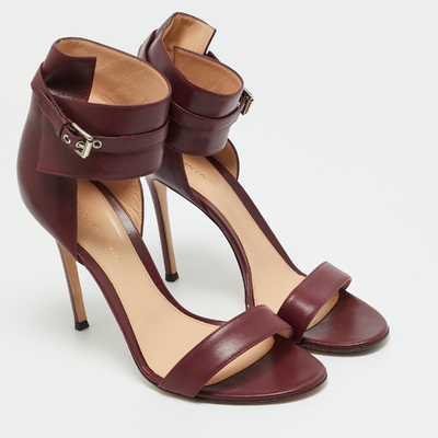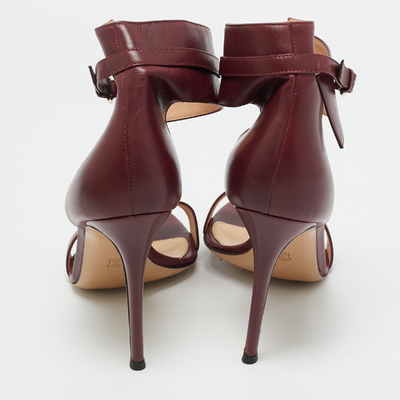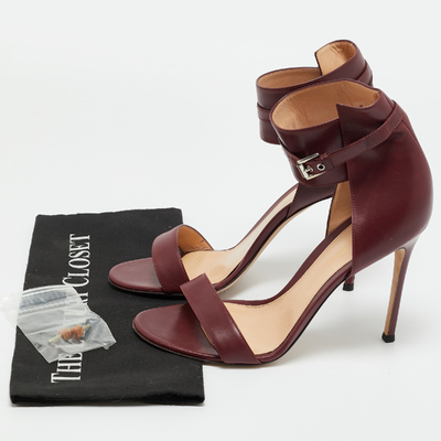 Gianvito Rossi Burgundy Leather Ankle Cuff Buckle Open Toe Sandals Size 40 1222782 (lpn31010064)