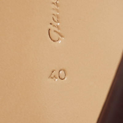 These sandals by Gianvito Rossi are the epitome of elegance and poise. Crafted from burgundy hued leather, they have open toes and elevated on 10.5 cm heels. These stunning sandals flaunt single vamps straps and come equipped with broad buckled ankle straps.