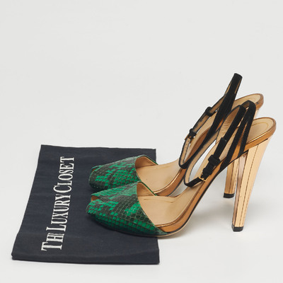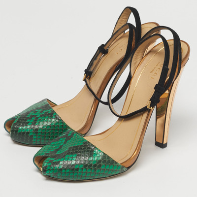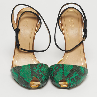 Gucci Green Python Leather and Suede Peep Toe Ankle Wrap Pumps Size 38 1222289 - 1