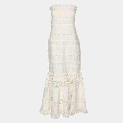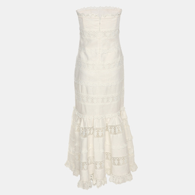 Zimmermann White Linen Lace Panel Tube Midi Dress S 1219848 (белый, lpn31010083)