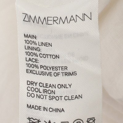 Lightweight white linen and delicate lace panels make this Zimmermann tube dress a wardrobe essential. Perfect for garden lunches, seaside escapes, or weekend brunches in the city.