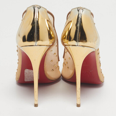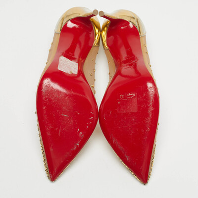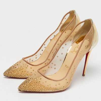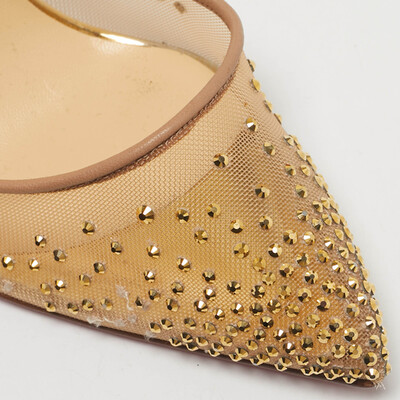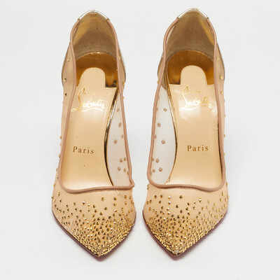 Christian Louboutin Gold Leather and Mesh Follies Strass Pumps Size 39 1223243 (lpn31010085)