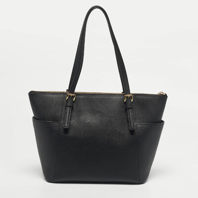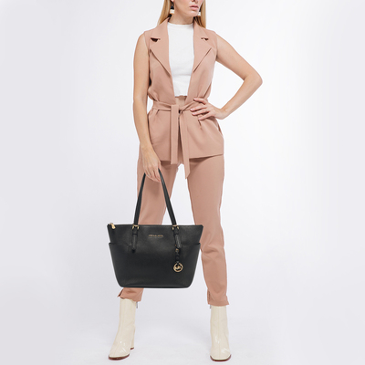 The Michael Jet Set tote embodies polished everyday luxury in classy black leather. With a spacious interior and a secure top zip closure, it’s designed for effortless organization while adding a feminine touch to daily ensembles.