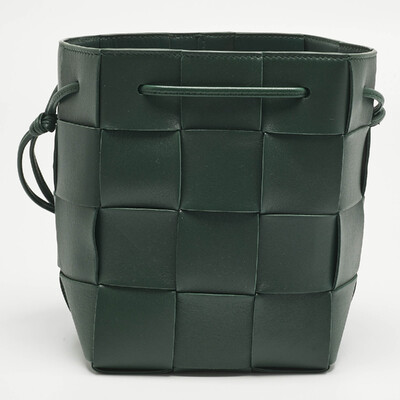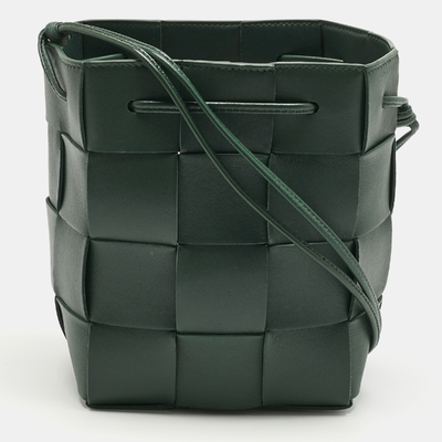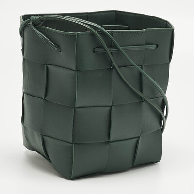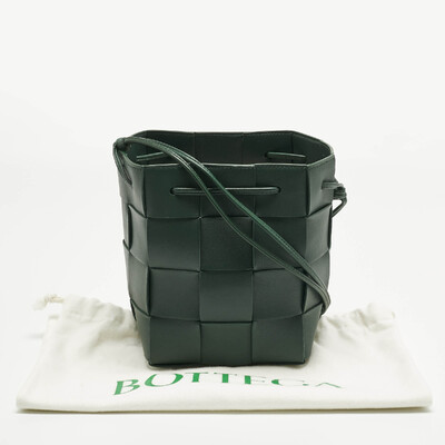 Bottega Veneta Green Intrecciato Leather Small Cassette Bucket Bag 1223152 (зелёный, lpn31010091)