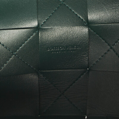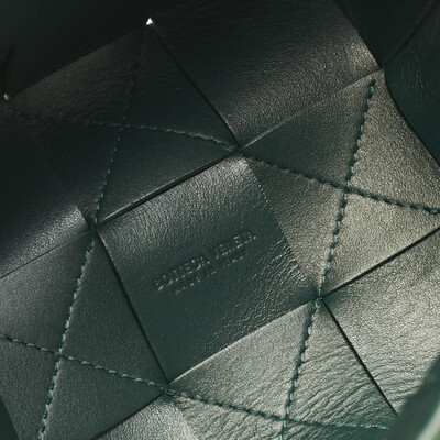 Crafted in Bottega Veneta’s signature intrecciato weave, this small bucket bag is finished in a deep green leather. Its compact shape and strap give it effortless versatility, while the artisanal weave adds texture and unmistakable house character.