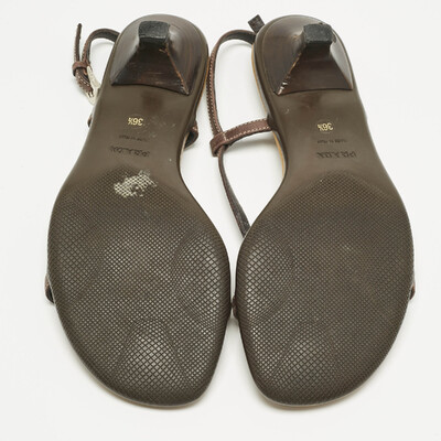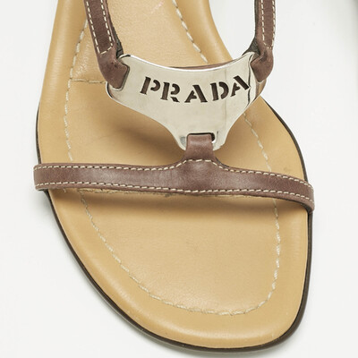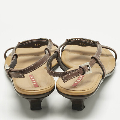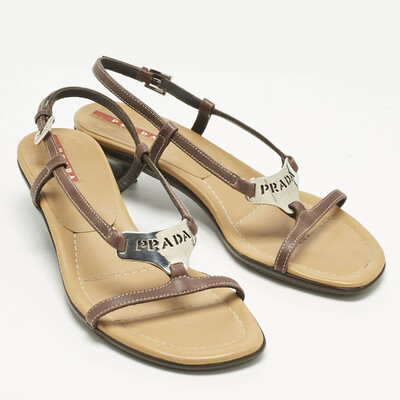 In smooth brown leather, these Prada slingback sandals offer timeless appeal. The open toe design and adjustable strap combine practicality with understated elegance.