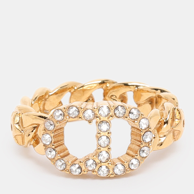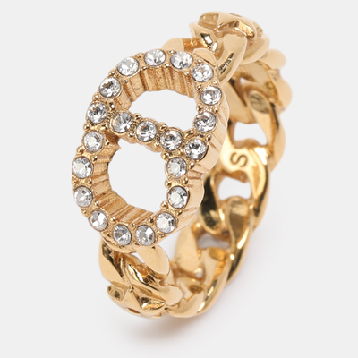 Dior Gold Tone Rhinestone Claire De Lune Chain Ring 1223074 (lpn31010099)