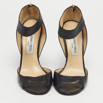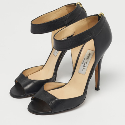Jimmy Choo Black Leather Peep Toe Ankle Strap Sandals Size 39 1222789 (чёрный, lpn31010109)