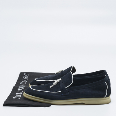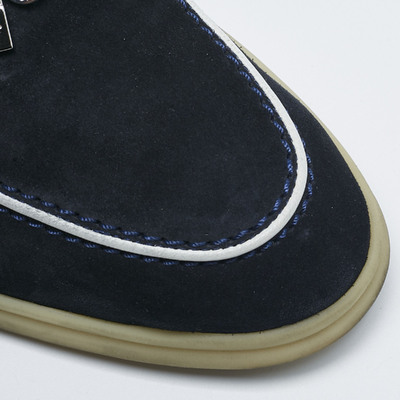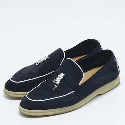 The Summer Charms Walk loafers from Loro Piana are crafted in supple navy suede, set on a flexible sole. Embellished with delicate charms, they showcase the brand’s signature dedication to casual luxury, combining comfort with understated distinction.