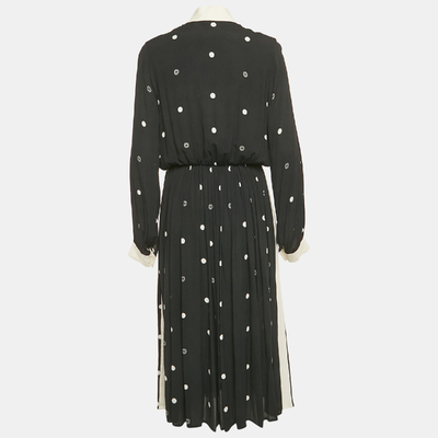 Elie Saab Black Polka Dot Crepe Midi Dress M 1222763 (чёрный, lpn31010162)