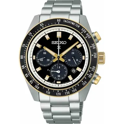 Prospex Speedtimer. Дизайн вдохновлен одним из первых в мире автоматических хронографов Seiko 1969 года. Питание от солнечной энергии. Запас хода при полной зарядке аккумулятора 6 месяцев. Ретроградный индикатор запаса хода. Функция предотвращения перезарядки.Часы-хронограф с секундомером и тахиметром. Секундомер с точностью 1/5сек и временем измерения 1ч. Защищены от магнитных полей (до 4800 А/м). 12-ти и 24-х часовой формат времени. Секундная стрелка вынесена отдельный циферблат.Циферблат с метками в виде штрихов защищен прочным сапфировым стеклом. Стрелки и метки фирменным люминесцентным покрытием LumiBrite, которое светится в темноте после непродолжительной подзарядки на свету. Окошко даты находится между отметками 4 и 5 часов. Завинчивающаяся задняя крышка с индивидуальным серийным номером. Браслет с раскладывающейся застежкой.