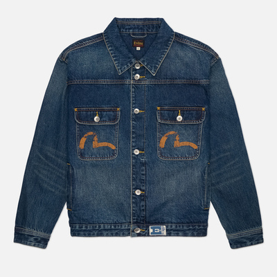 Мужская джинсовая куртка Evisu Distressed Seagull Print & Frayed Logo Patch Embroidery Denim, цвет синий, размер XL 2eaejm5dj6001rxdn-indd-4965667 (синий, lpn31016497)