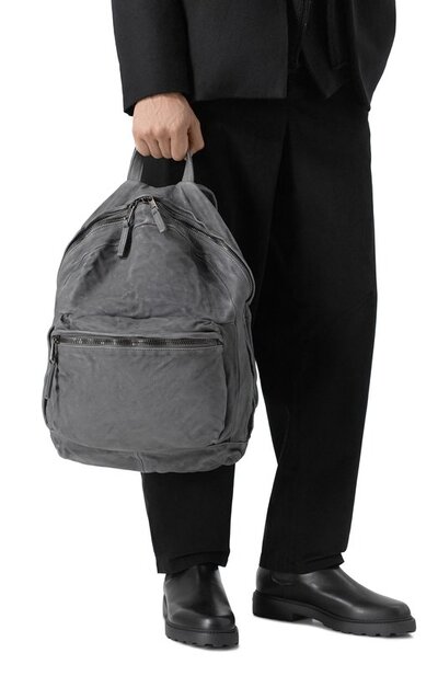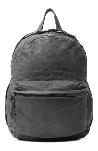 Рюкзак на встречной молнии выполнили из жатой кожи ягненка растительного дубления. Помимо наружного кармана предусмотрели еще одни внутренний, а также отсек для ноутбука.
