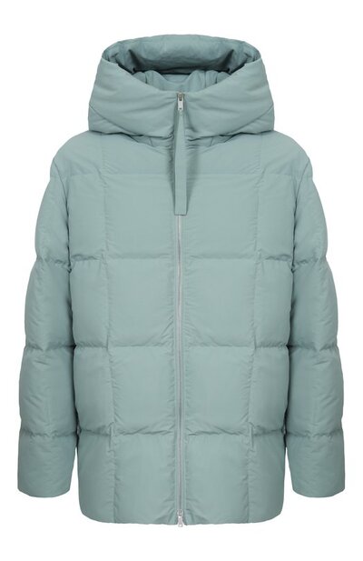 Куртку из влагоотталкивающего вторичного полиэстера утеплили гусиным пухом и пером. Верхний пуллер встречной молнии подчеркнули лентой, а сзади разместили кожаный патч с тисненой эмблемой линии Jil Sander+. Помимо боковых карманов предусмотрели и внутренние.