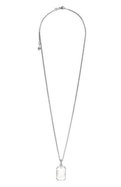 Подвеску Millenia украсили крупным кристаллом огранки «октагон», удерживаемым четырьмя парными крапанами. Аксессуар и входящую в комплект регулируемую цепочку выполнили из латуни с родиевым покрытием.