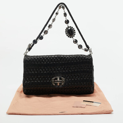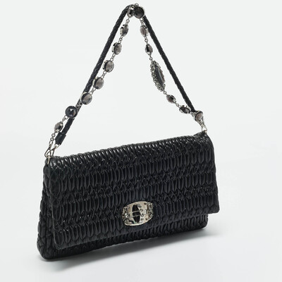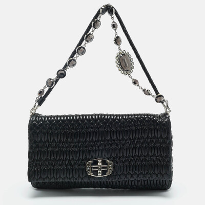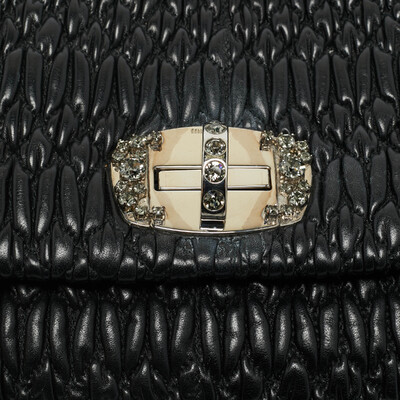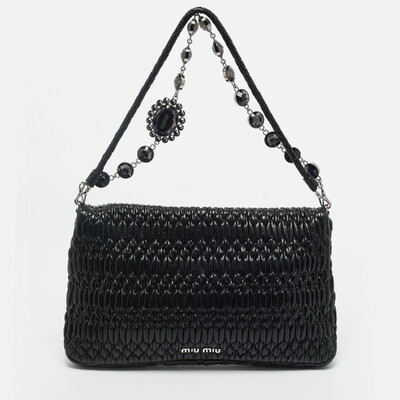 Miu Miu brings modern glamour to its matelassé leather shoulder bag, enriched with sparkling crystal details along the chain strap. The tactile texture is instantly recognizable, adding depth and character to its compact shape. Designed to be both playful and elegant, this piece captures the maison’s ability to merge youthful spirit with timeless sophistication.