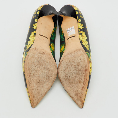 Glossy patent leather meets Dolce and Gabbana’s floral prints in these pumps. The pointed toes, colors, and heels make them as striking at a formal event as they are with jeans for a burst of color.