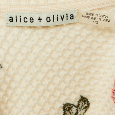 Alice + Olivia Cream Floral Intarsia Wool Puff Sleeve Kitty Cardigan L 1224636 - 1
