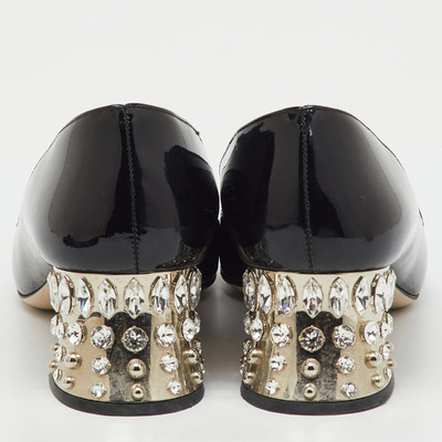 Miu Miu Black Patent Leather Crystal Embellished Block Heel Pumps Size 40 1224217 (чёрный, lpn31018983)
