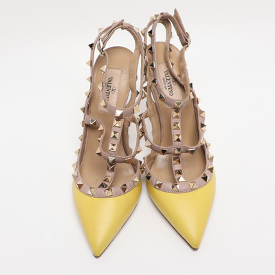 Valentino Yellow/Beige Patent Leather Rockstud Caged Ankle Strap Pumps Size 36 1224265 - 1