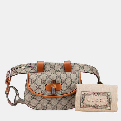 Gucci’s Mini GG Supreme 1947 Belt Bag in beige canvas offers a compact and stylish design with subtle bamboo accents. Its versatile silhouette makes it perfect for both casual days and refined evenings. Effortless luxury meets modern practicality.