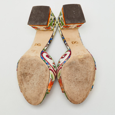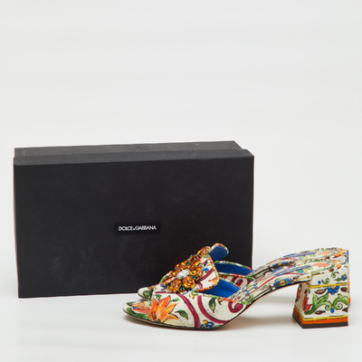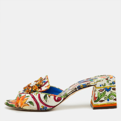 Dolce&Gabbana Multicolor Printed Fabric Crystal Embellished Slide Sandals Size 41 1224497 - 1