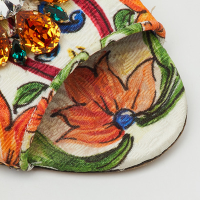 Dolce&Gabbana Multicolor Printed Fabric Crystal Embellished Slide Sandals Size 41 1224497 (lpn31019018)