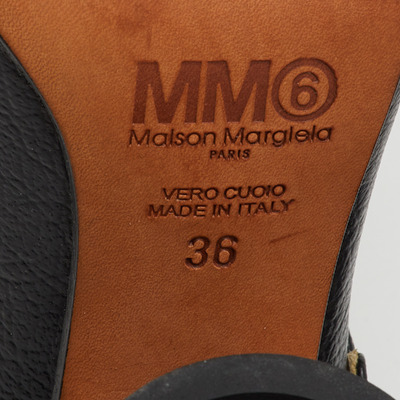 Iconic and avant garde, these Margiela Tabi mules feature the brand’s signature split toe design in black leather. The block heel offers stability while making a bold statement for contemporary fashion lovers.