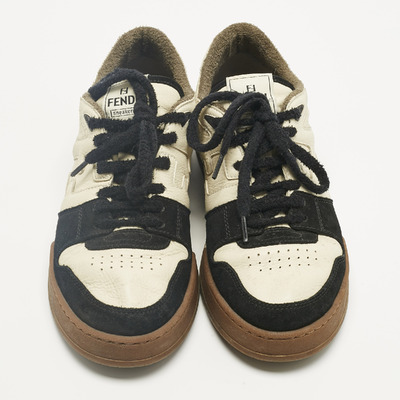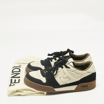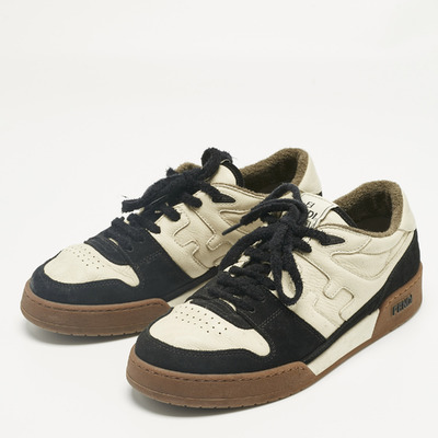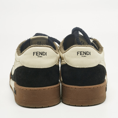Fendi Cream/Black Leather and Suede Low Top Sneakers Size 43 1224498 (lpn31019041)