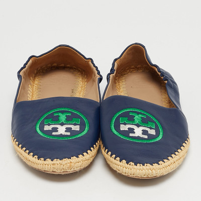 Classic and comfortable, these Tory Burch Ines espadrilles are crafted from smooth navy blue leather with a signature logo detail. The braided jute sole adds a timeless, summery touch, while the cushioned footbed ensures all day wear. Perfect for casual outings or chic weekend looks.