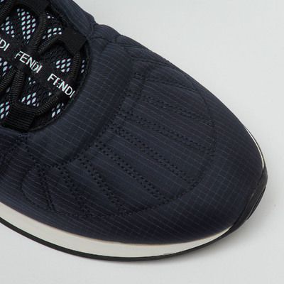 Crafted for movement with an urban spirit, these Fendi FF Freedom sneakers come in navy blue and black fabric. The layered textures and branded trims add a dynamic edge, while the lightweight sole keeps every step agile.