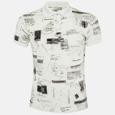 Dior Homme White Scrapbook Printed Cotton Knit Polo T-Shirt S 1224188 (белый, lpn31019058)