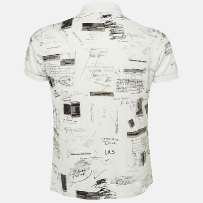 Dior Homme White Scrapbook Printed Cotton Knit Polo T-Shirt S 1224188 - 1