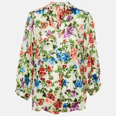 Alice + Olivia Cream Floral Devore Mandarin Collar Top XL 1224159 (lpn31019062)