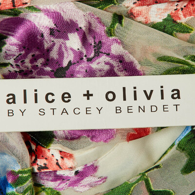 Lively florals trail across this Alice + Olivia devoré top, set against a cream base with long sleeves and a mandarin collar. It’s light, comfortable, and ideal for pairing with denim or skirts.