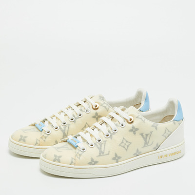 Louis Vuitton White/Blue Leather and Mesh Luxembourg Lace Up Sneakers Size 37 1224128 (белый, lpn31019073)