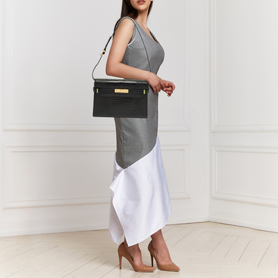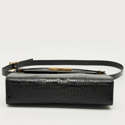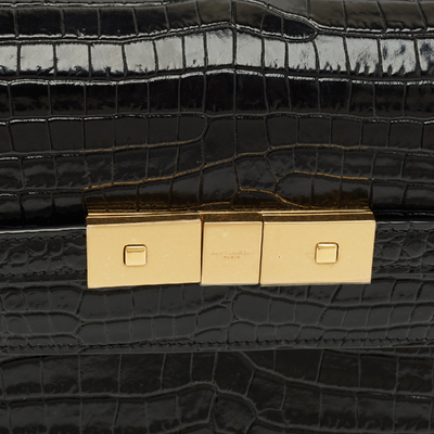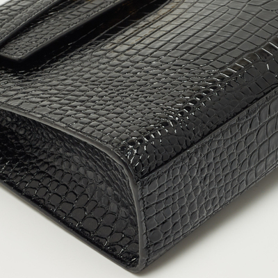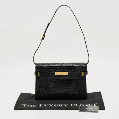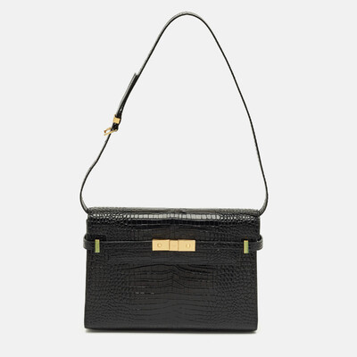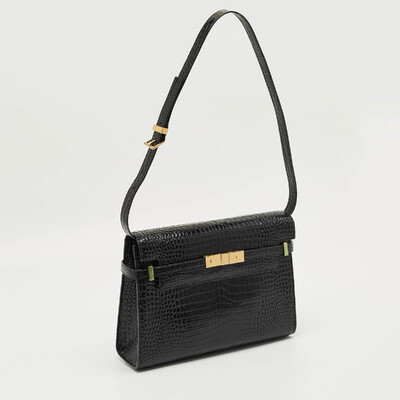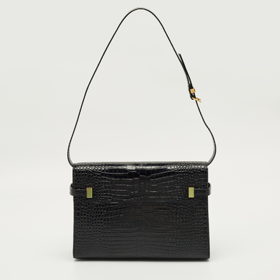 Saint Laurent’s Manhattan shoulder bag reflects urban minimalism at its finest, crafted in croc embossed black leather. The slim silhouette and discreet clasp closure keep the focus on texture and form. Designed to echo New York’s sleek energy, this piece embodies quiet luxury and contemporary confidence, perfect for streamlined city dressing.