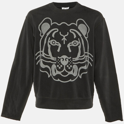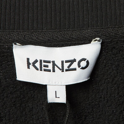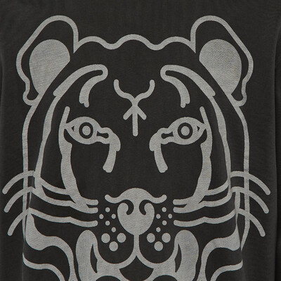 Kenzo’s iconic tiger motif takes center stage on this black cotton sweater, creating a striking contrast against the clean base. The crew neck cut offers timeless wearability, while the print reinforces the house’s playful edge. Styled with denim or layered under jackets, it’s a statement piece rooted in comfort and character.