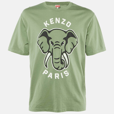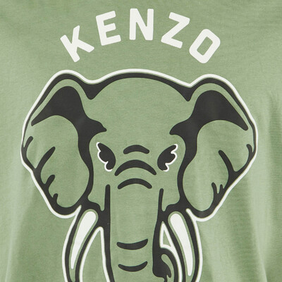 Kenzo channels bold graphic energy in this cotton T shirt, accented with an elephant print in vibrant tones. The green base enhances its streetwear sensibility while keeping it versatile enough for everyday wear. A standout piece that captures the maison’s playful DNA, it’s perfect for grounding urban inspired looks.