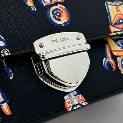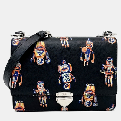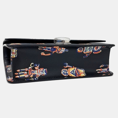 Prada Black/Multicolor Leather Saffiano Saint Robot Flap Bag