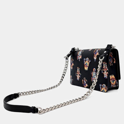 Prada Black/Multicolor Leather Saffiano Saint Robot Flap Bag 1224036 (чёрный, lpn31019146)