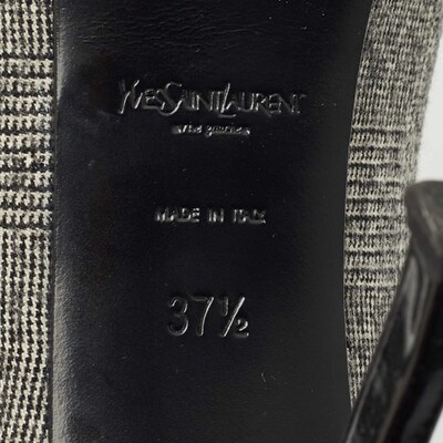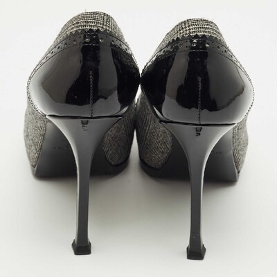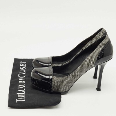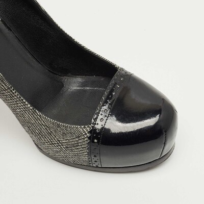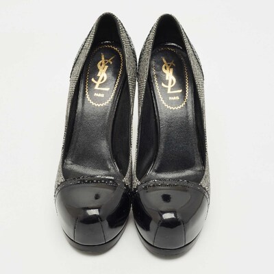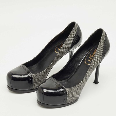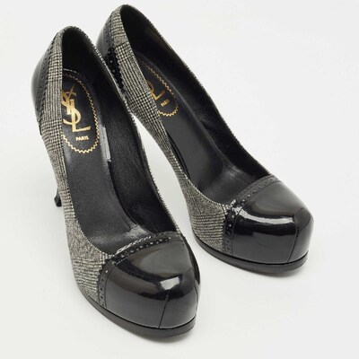 Yves Saint Laurent Black/Grey Tweed and Patent Leather Platform Pumps Size 37.5 1224067 (чёрный, lpn31019155)