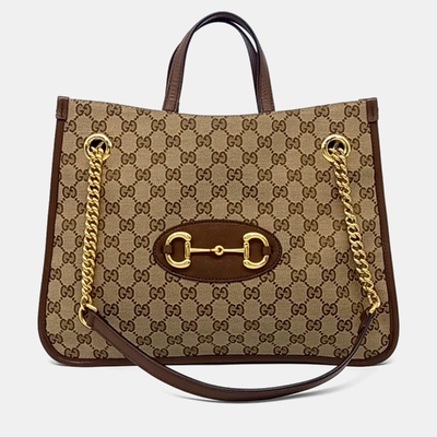 Elevate your everyday look with the Gucci Beige/Brown Coated Canvas 1955 Horsebit Medium Tote Bag. This authentic designer piece blends timeless craftsmanship with modern style, offering a practical yet luxurious accessory that effortlessly enhances any outfit.